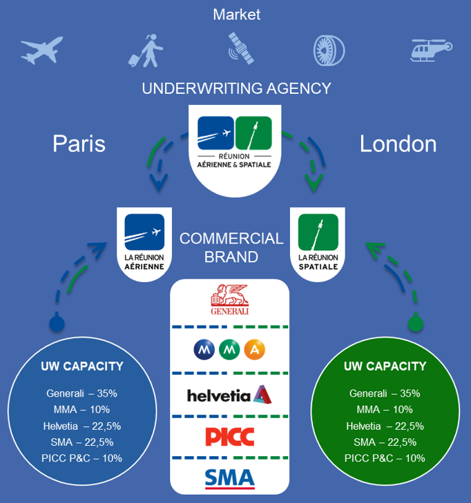 RÉUNION AÉRIENNE & SPATIALE souscrit des affaires pour le compte de ses compagnies mandantes, dans la plupart des pays et territoires, sous réserve des lois et réglementations locales et des éventuelles sanctions internationales.